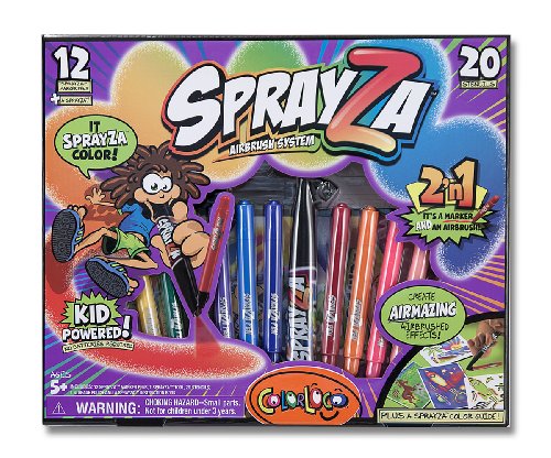 - Activity kit includes 12 SprayZa Pens, 1 SprayZa Airbrushing Tool, 20 stencils and instructions