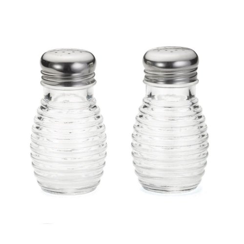 Tablecraft 2 Oz. Beehive, Tablecraft 2 oz. beehive glass salt / pepper shakers w/ s/s tops get away from ordinary salt and pepper shakers with the stylish "bee hive" look. 2 oz. capacity is perfect for even the busiest restaurants, and the 18-8 stainless steel tops are corrosion resistant for a long life. standard features: manufacture: tablecraft capacity: 2 oz bee hive style 18/8 stainless steel tops clear glass corrosion resistant for a long life model #:bh2 114552